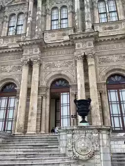 The Bosphorus Gate of Dolmabahce Palace is a symbolic building that connects the palace gardens and the Bosphorus Strait, combining the splendid stone decorations of the Ottoman Empire with European design. This magnificent gate blends in with the blue waves of the strait, creating a spectacular view like a picture frame.
