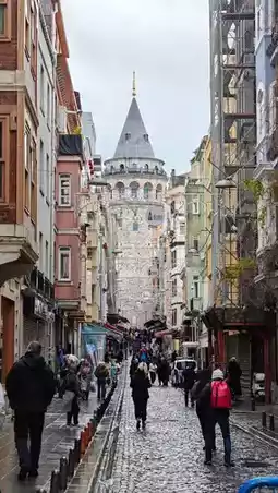 Next, we visited the Galata Tower, which has a red line on its body. The part below the red line was built in the 5th century, and the part above it collapsed in a major earthquake. The Ottoman Empire rebuilt it in the 16th century.