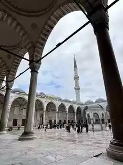 Opposite Hagia Sofia, built during the reign of Sultan Ahmed I, it has a dome and 6 minarets, and is notable for its blue Iznik tiles inside.