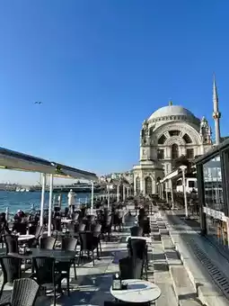 Our first stop was near Dolmabahçe Palace, where we enjoyed a traditional Turkish breakfast—menemen (Turkish-style scrambled eggs with tomatoes and peppers), fresh bread, olives, cheese, and, of course, Turkish tea. After breakfast, we entered Dolmabahçe Palace, marveling at its lavish interior, crystal chandeliers, and grand halls that once housed Ottoman sultans.