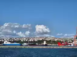 The color of the sea is also so pretty. Cruise ships and water boats pass by here all the time, and it's so cool.