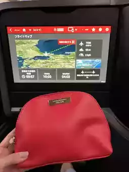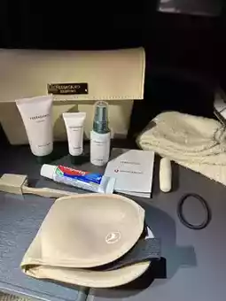 The amenities were a Ferragamo pouch, white on the way there and red on the way back.