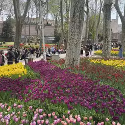 You can walk from Hagia Sofia to Gulhane. It is very easy to get there by walk or take the tram. There are colorful tulips. I have been there 18 April, it seems almost the end season of tulips. This attractive garden is like center park for local and visitors to spend time with family and friends. It is free entry💕