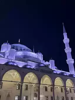 Visiting at night felt like stepping into Aladdin's world! The interior, with its white theme, was charming! Note that you cannot enter during prayer times (which occur five times a day).