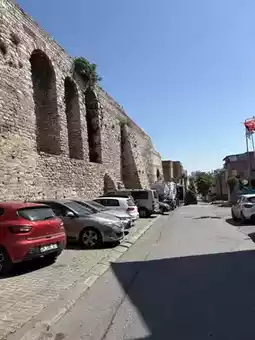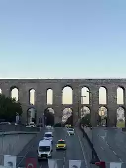 Constructed during the Byzantine Empire to transport water into Constantinople, only parts of the aqueduct remain today. Cars now pass beneath its arches.