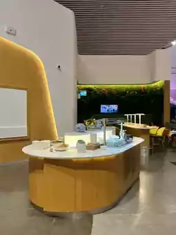 The lounge offers buffet-style food and barista-style coffee, making it a popular choice for its diverse selection.