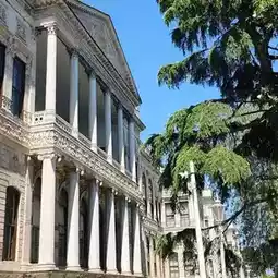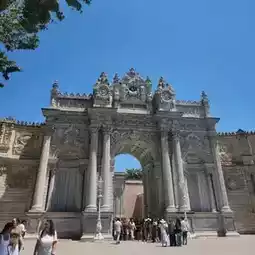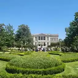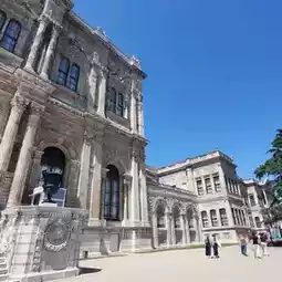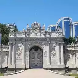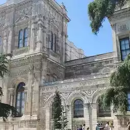 Dolmabahçe Palace is an imperial palace of the Ottoman Empire, showcasing stunning architecture that blends modern European styles with traditional Ottoman design. The palace features numerous rooms adorned with luxurious decorations and chandeliers. It is situated along the Bosphorus Strait, offering a pleasant atmosphere with views of the sea and the city.
