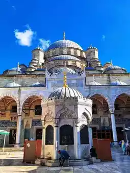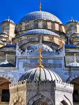 While its name means "New Mosque," Yeni Camii is a 400-year-old masterpiece gracing Istanbul's Eminönü skyline. Its majestic domes and minarets create an iconic silhouette against the Golden Horn.