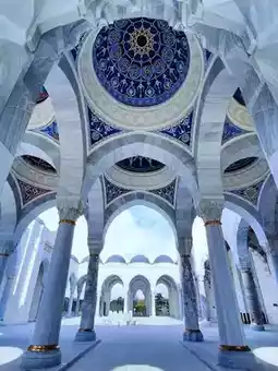 🕌Visit at Sunset: The mosque's exterior, especially the minarets resembling ship masts, looks spectacular against the evening sky.