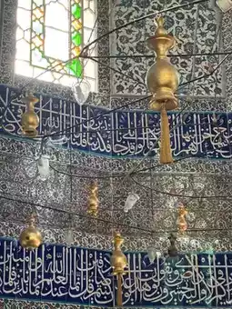 4️⃣ Inside, the mosque is decorated with stunning red and white Iznik tiles and intricate calligraphy.