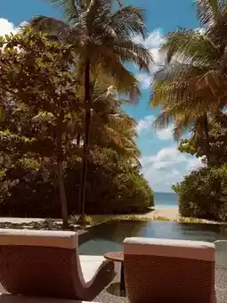 Villas range from beach and overwater to the ultra-luxurious Stella Maris floating villa and a full private island. Each villa features a private pool, sundeck, hammock, and ocean views.