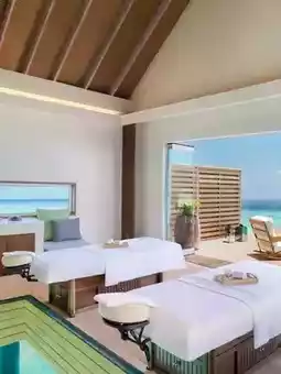 Nestled in the crystal-clear waters of the South MalΓ© Atoll, Waldorf Astoria Maldives is spread across three private islands. Just a 45-minute luxury yacht ride from MalΓ© Airport, your dreamy escape begins before you even arrive π€β¨.