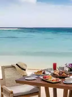 Enjoy a 45-minute luxury yacht transfer, arranged by the resort 🛥️