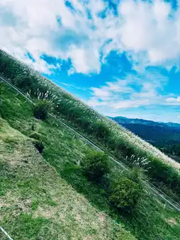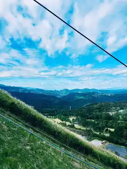 The only way to reach the top of Mt. Omuro is to take a mountain lift, whose operating hours vary depending on the season. The design of the hanging chair is safe and stable, and because there is no glass obstruction, you can enjoy the surrounding scenery in 360 degrees. The mountains are undulating and the woods are dense, allowing friends who are afraid of heights to temporarily forget their fear🥰.