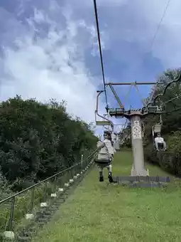 It is recommended to take the cable car up the mountain. The cable car is just a bench with no fence, but it is quite safe.