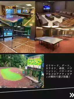 The biggest attraction is the "all-inclusive" style! ! Almost all meals, drinks, and in-house activities during your stay are included in the price, so you can enjoy yourself to your heart's content without worrying about your wallet. There are table tennis, darts, bouldering, a game corner, and private baths, so adults and children alike will never get bored. It has a sense of freedom where you can play freely, and is popular with a wide range of people, from families and groups of friends to couples.