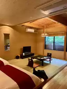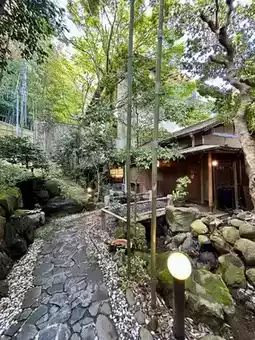 A luxurious hot spring inn where you can enjoy hot spring water directly from the source in your room in the tranquility of a bamboo forest.