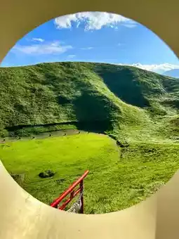 The crater is approximately 300 meters in diameter and surrounded by a grassy path. From the summit, you can stroll along the "Oba-meguri" (crater trail) for panoramic views of the Izu Plateau, Sagami Bay, and even, on clear days, Mount Fuji and the Seven Islands.