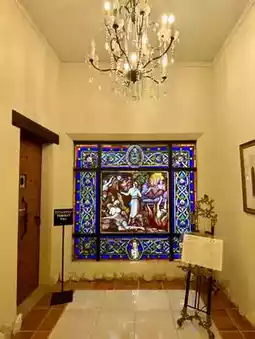 The building itself feels like a European manor, with soft classical music playing in the background and the scent of incense gently filling the halls. Inside, you’re surrounded by stunning antique stained glass works, many of which date back to the 19th and early 20th centuries. The craftsmanship is breathtaking—when the light filters through, the glass glows in rich blues, reds, and golds. It’s almost like walking through a storybook chapel.