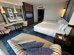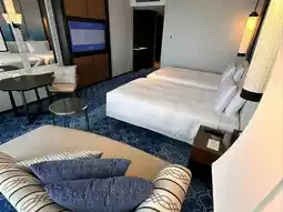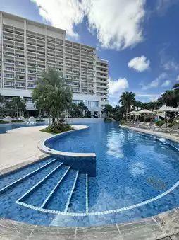 The lobby itself is grand and spacious, to the point where it doesn't even feel like you're in Japan. Personally, it gave me a bit of a Guam-like vibe. The resort exudes a strong vacation atmosphere, with blue skies and emerald-colored waters that truly give you the sense of an open and refreshing getaway. The rooms are clean and minimalist, meeting all the requirements of a beachfront resort hotel. When you open the window, you're greeted with a stunning view of the emerald sea, fresh air, and warm sunlight—making it a perfect place for relaxation. Additionally, the lounge offers unlimited drinks, snacks, and other beverages, which was a great perk. The spacious rooms, complete with sofas, tables, and outdoor terraces, left a lasting impression. The room conditions at this Ryukyu hotel were exceptional, and I have fond memories of my stay. If you're looking for a resort-like experience or a beachfront hotel in Okinawa, I highly recommend Ryukyu Nashiro Resort. The expansive and clean space is so impressive that it doesn't feel like a typical Japanese hotel. While it is on the pricier side among Okinawa hotels, I think it's worth it as a spacious resort hotel. The lighting, artwork, and marble decor give the rooms a simple yet elegant touch. Unlike many beachfront hotels where you often see signs of aging, peeling paint, or discolored sunbeds, this place had none of those issues.