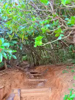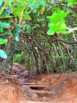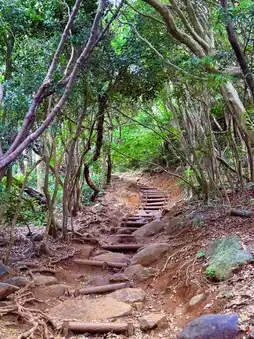 Located within the Keya Oto Park in Itoshima, there is a forest trail surrounded by coastal shrubs and trees. The entrance to the trail is covered by dense woods, giving it a hidden and mysterious vibe, reminiscent of the Totoro Forest from Studio Ghibli's fairy tales. This unique atmosphere has made it an instant hit as a popular Instagram-worthy spot. The trail stretches for several hundred meters through a dense forest where sunlight barely penetrates, making visitors feel as though they might encounter the legendary Totoro at the exit.