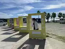 This seaside resort area is home to attractions like "Aqua House Marizon" and the wedding venue "The Luigans Spa & Resort," making it another photogenic spot.