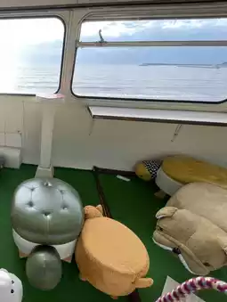 My favorite spot is the nearby "London Bus." You can get off the bus to enjoy the sea breeze, take a break, check in, and enjoy ice cream and soda—a real treat on a hot summer day.