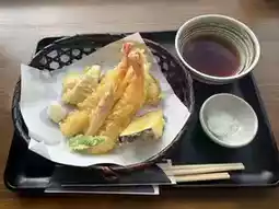 The restaurant faces the ocean, offering a view of the Couple Rocks in the distance—a very chill scenery. The tempura deserves special mention, especially the fish, which was fresh and flavorful. A delightful surprise! 👍🏻