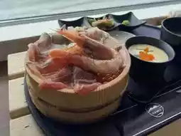 This restaurant is located near the Couple Rocks and specializes in seafood rice bowls. The food is served in a large wooden bucket, making the portion size impressive! The staff even provide a wooden frame for taking Instagram-worthy photos 😂