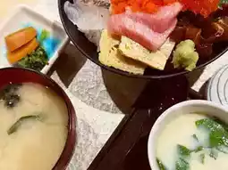 The selling point is that the fisherman caught fresh fish that day, cut thickly, and the fish tastes super fresh and sweet! With tuna, halibut, salmon and local specialty small fish, each slice was cold and refreshing. The set meal also includes miso soup, white rice and small dishes. The portion is definitely surprising!