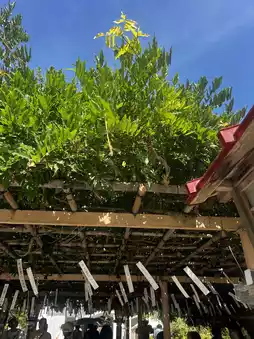 The shrine grounds feature a wisteria tree known as "Nine Dragons Wisteria," which is approximately 300 years old, as well as a peony garden with around 1,300 peony plants spanning 100 varieties. In mid-May, the annual flower festival transforms the shrine into a vibrant and colorful haven.