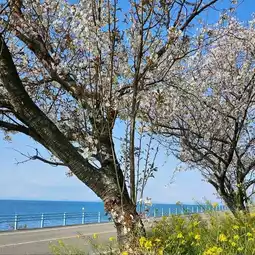 On one side, you have the carpet of canola flowers, and on the other, the shimmering blue sea of Iyo-Nada—a perfect location that attracts more and more visitors each year for leisurely strolls and walks.
