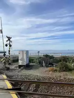 • The wide-open sea right in front of the station! • You can sit on a chair next to the railroad tracks and leisurely enjoy the ocean view.