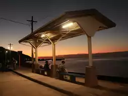 • The bench, station sign, and covered waiting area are the perfect photo spots