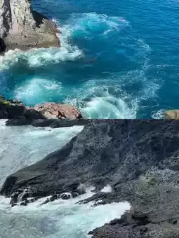 The entire blue Pacific, swaying at the edge of the cliff.