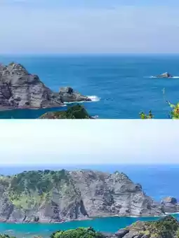 (Suggested captions: Coastline photos/Cerulean waterfalls/Close-ups of *wagashi* + handwritten haiku)