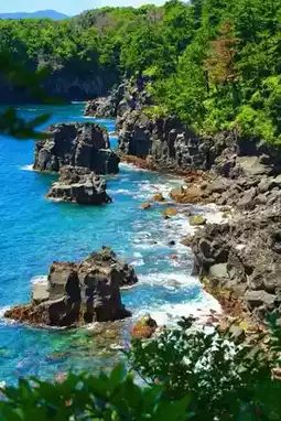 2. Lava Coast: Kinosaki Coast boasts a history of over 4,000 years, formed by volcanic eruptions from Mount Omuro. The black lava cliffs collide with the deep blue sea, and every rock seems to tell a story of time, exuding a mysterious yet wild charm.