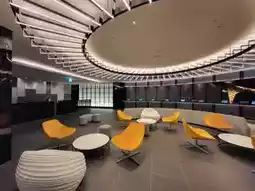 The hotel lobby features a vibrant yellow and technological design, complete with a model airplane, showcasing the unique character of the Kansai Airport branch. Check-in is simple and intuitive. Simply enter your room using the QR code provided upon booking. Once you set your room card, you're seamlessly entered. Breakfast vouchers are issued along with your room number, and the staff are friendly and helpful with any questions, ensuring a seamless check-in experience.
