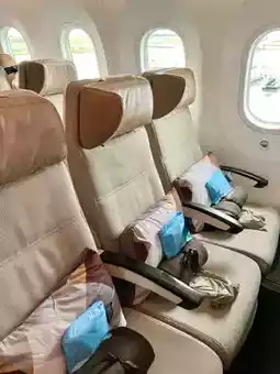 There was plenty of seating, so we were able to share three seats between the two of us, allowing us to get some good sleep. 💤