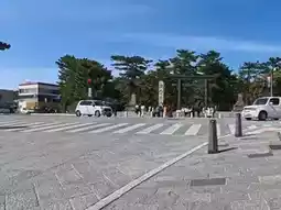 ・It has a deep history, and the origins of its founding are recorded in the Kojiki, Nihon Shoki, and Fudoki. You can almost feel that long history in the large pine trees lining the approach to the shrine.