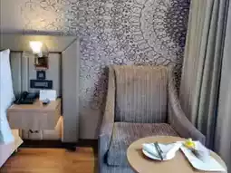 The Indian-themed wallpaper in the room is impressive, with its subtle and elegant design.