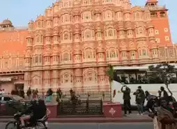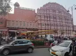 The Hawa Mahal, located in Jaipur, India, was built in 1799. The five-story building boasts a staggering 953 windows. Due to the conservative customs of the time, the windows, resembling beehives, were designed to allow the concubines inside the palace to see the street without being seen by those outside. Located on a busy street in Jaipur, the Hawa Mahal is often crowded with people and vehicles. To avoid congestion, the tour leader arranges the first stop for a visit early in the morning, when there are fewer people, vehicles, and other tourists. The tour leader will then return to the market in the afternoon to take photos of the Hawa Mahal.