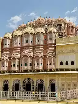 Jaipur, known as the Pink City, boasts a number of pink buildings, but Hawa Mahal is one of the most impressive palaces. Constructed of red and pink sandstone with intricate white and golden details, it stands like a royal crown in the middle of the city landscape.