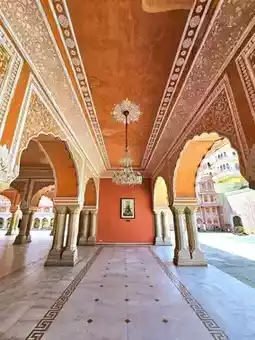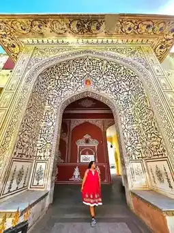 The City Palace has an entrance fee of 500 rupees, but if you want an exclusive experience, it will cost 2,500 rupees. The palace's architecture is a blend of Rajput (Hindu) and Mughal (Islamic) styles, featuring vibrant and stunning colors. The design is open and not overly dense. Built in the 18th century, the palace was truly intended as a retreat from the outside world for the royal family, and it certainly feels that way. Everything within the palace is clean and beautiful. Once you step outside its walls, you can truly appreciate the realities of life beyond the palace. The highlight here is the Peacock Gate, where you can admire the intricate peacock patterns adorning each entrance. It's truly breathtaking.