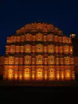 • The palace facade from the main road: The view from the main road at night, the lights reflecting off the pink sandstone, is simply breathtaking.