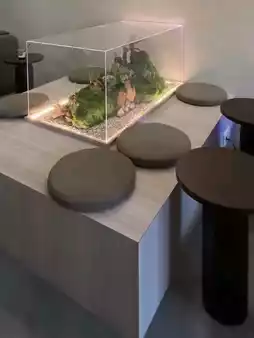 I chose to sit by the window, which overlooks a small, carefully arranged garden outside. Sunlight filters through the sheer curtains, giving a perfectly warm feeling. The server brought a cup of matcha latte along with cute Japanese sweets, neatly arranged on a wooden plate. The gentle fragrance of matcha slowly unfolds as it is stirred together with the hot milk.
