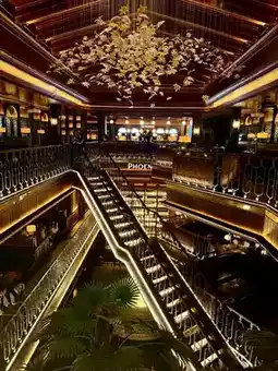 ✨ Ambience: Phoenix Nirvana Theme: The bar's design is inspired by the legend of the phoenix, symbolizing eternity and rebirth. The overall style is opulent, retro, and full of mystery. Copper Touches: Extensive use of copper accents adds a luxurious and classic feel. A spacious three-story space: The first floor houses the bar, the second floor is the restaurant, and the third floor offers private seating, catering to diverse needs. Outdoor Terrace: Enjoy fine wines and delicious food while admiring the night view.