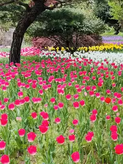 Haneulbit Arboretum, located at 2746 Jangheung-daero, Yongsan-myeon, Jangheung-gun, Jeollanam-do, is a beautiful destination to visit in April, especially for those who love tulips. The arboretum is known for its impressive display of tulips during the spring season.