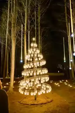The gentle illumination spreads through the forest surrounding the church, creating a stunning starlit corridor. At the end of the path, a tree made of lanterns awaits visitors. Although it hadn't snowed during the visit, the scenery becomes even more enchanting with a blanket of snow.