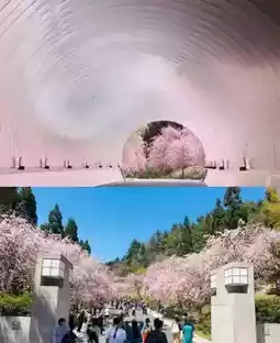 A fusion of art and cherry blossom tunnels in the mountains, offering a springtime feast of art and nature.